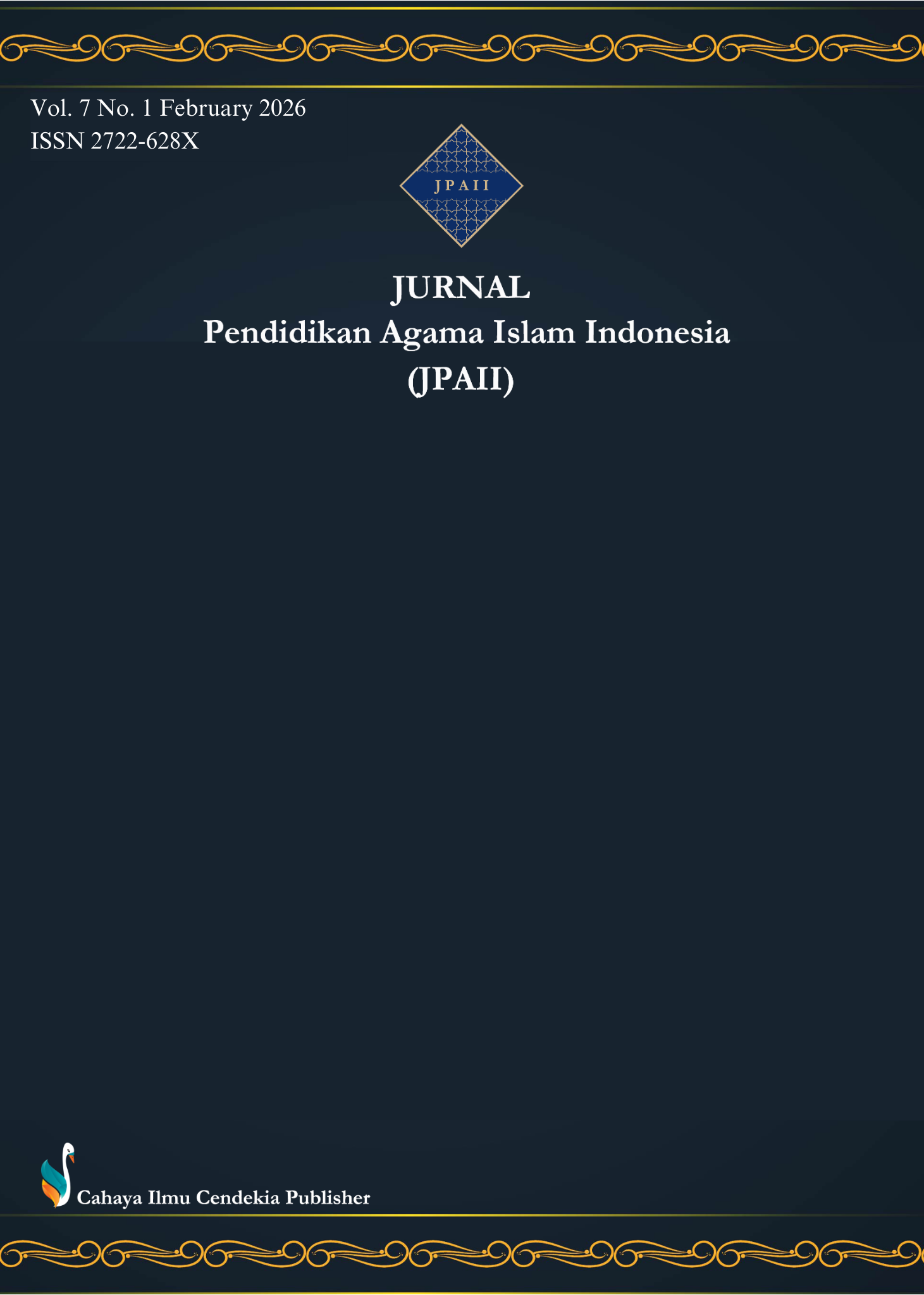 - Authors retain copyright and acknowledge that the Jurnal Pendidikan Agama Islam Indonesia (JPAII) is the first publisher licensed under a Creative Commons Attribution 4.0 International License.